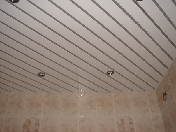 Обшивать потолок наиболее целесообразно глянцевым пластиком. Блестящая поверхность визуально делает помещение несколько выше, просторнее и благодаря отражающим свойствам – светлее, что позволяет устанавливать менее мощные светильники или использовать меньшее их количество.