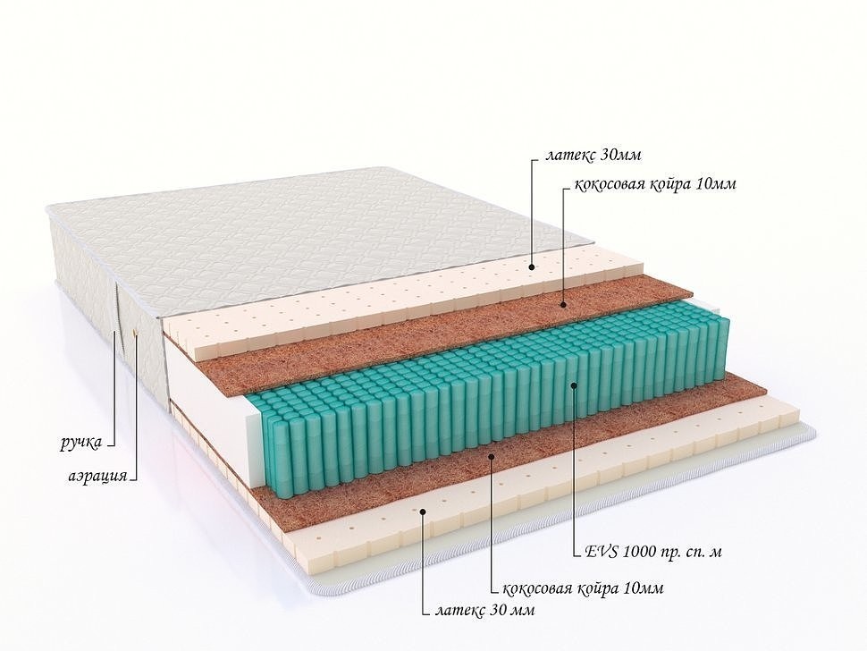 Матрасы данного типа, как правило, состоят из следующих элементов: