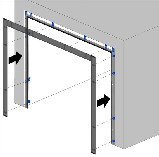 Качество работы и долговечность секционных ворот сильно зависит от качества проема, куда устанавливается конструкция. Причина этого в том, что существует достаточно много точек крепления рамы ворот к конструкции здания, и если проем далек от идеала, то закрепить раму точно, не изгибая ее, достаточно сложно. А из-за изгиба рамы ворот возникает перекос панелей, затрудненный ход по направляющим, щели и повышенный износ торсионного механизма.