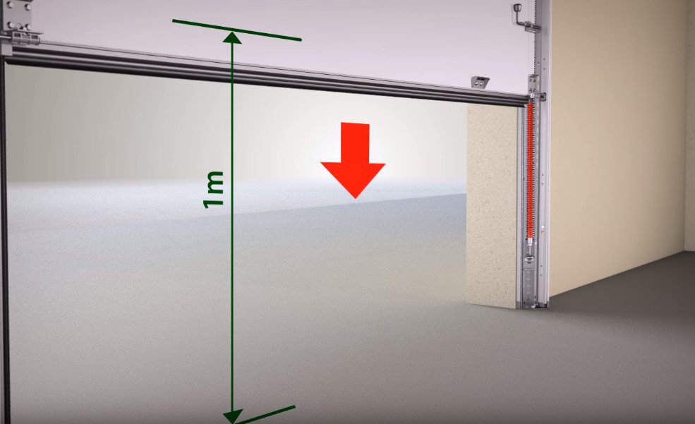 Если имеется вторая перемычка и она не дает воротам открыться, то за уровень потолка следует принять нижнюю точку перемычки.