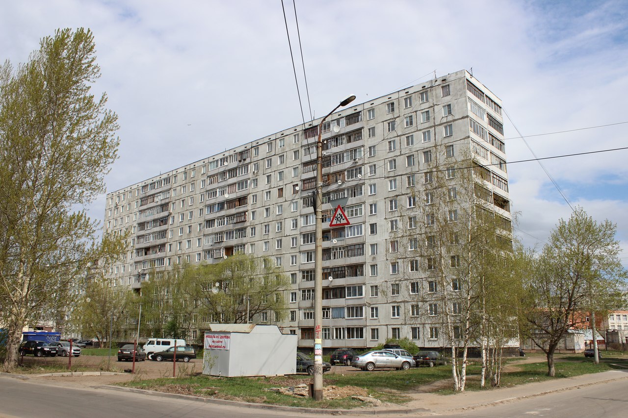 Наружные стены — навесные трехслойные керамзитобетонные панели толщиной 30см. Имеется пассажирский лифт грузоподъемностью до 400кг. и грузопассажирский лифт грузоподъемностью 630кг. В данной серии домов квартиры бывают 1-о, 2-х и 3-х комнатные. По 4 квартиры на этаже. Высота потолков 2,64м.