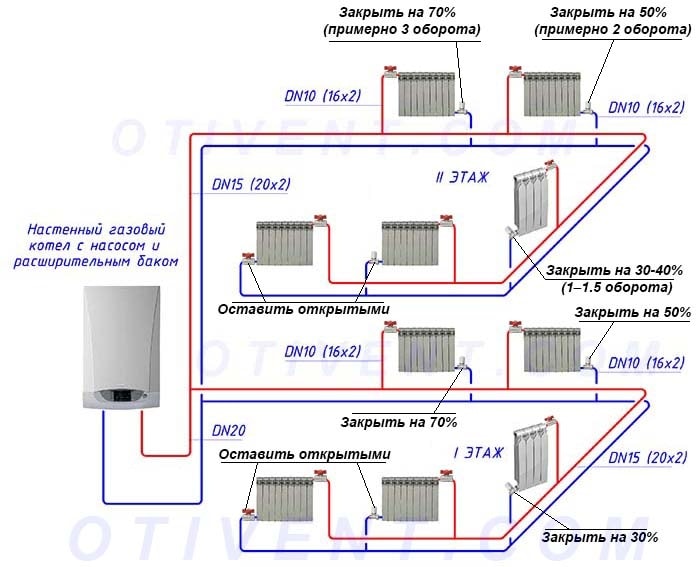 В целом же выбор способа разводки систем отопления определяется множеством факторов, среди которых наиболее важными являются мощность котла, количество радиаторов и число секций в каждом из них, этажность постройки и т.д.