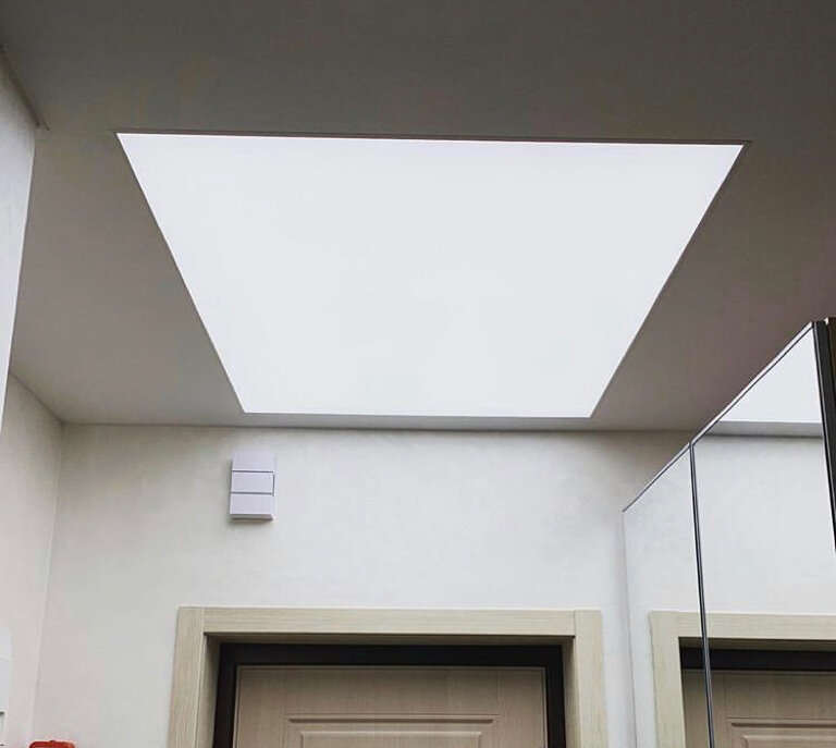 Он создает в помещении иллюзию дневного света, поэтому его можно использовать в помещениях без окон или для имитации окон. Имитация светлого неба благотоворно воздействует на психоэмоциональное состояние человека поскольку создает впечатление нахождения в открытом пространстве.