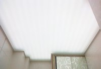 Как известно, натяжные потолки монтируются как к стенам, так и внутрь коробов из гипсокартона. Технология монтажа полупрозрачного полотна такая же, как и простого белого.