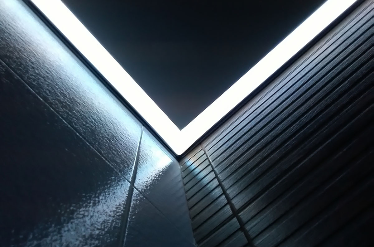 Все привыкли к таким осветительным приборам, как бра или точечные светильники, если говорить об освещении ванной комнаты. Да, несомненно бра это классика. И точечные светильники тоже скоро станут ей. Но, согласитесь, бра и светильники уже слегка приелись и со временем их просто не замечаешь, или же хочешь заменить на какую-то другую модель. То же самое произошло с алюминиевыми реечными потолками. Когда-то они были в моде, но сейчас выглядят очень тоскливо. Большое количество элементов, соответственно большое количество швов между ними, неидеальные угловые стыки направляющих алюминиевых профилей — все это нагромождение над головой, как то давит. Совсем другое дело натяжные потолки с идеально ровной, гладкой поверхностью без швов и стыков. С появлением таких потолков стало возможным уйти от всех этих обычных светильников, ламп, бра и сделать так чтобы светился весь потолок.