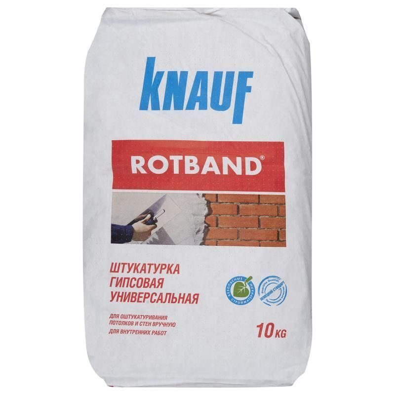 - Кнауф Ротбанд является универсальной белой смесью на основе гипса. Для того чтобы обеспечить максимальное сцепление с поверхностью, в состав смеси входят специальные добавки и компоненты.