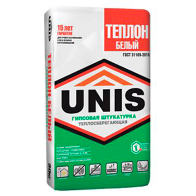 Влагостойкая гипсовая штукатурка Юнис Теплон предназначена для сплошного или частичного выравнивания поверхностей дверных и оконных откосов, стен и потолков внутри жилых и общественных помещений с умеренной (таких как зал, спальня, кабинет и т.
