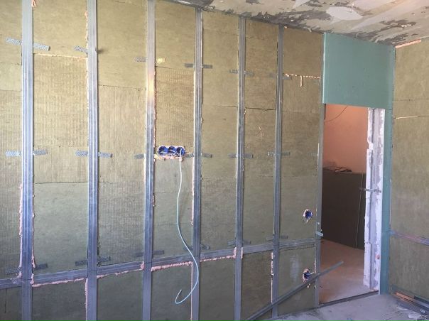 От профиля могут оставаться лишь небольшие обрезки. Также не сильно загрязнит помещение и гипсокартон. Когда проводится выравнивание стен гипсокартоном без каркаса, то из-за использования раствора получается много мусора. - Можно использовать утеплитель или шумоизоляцию. Та же минеральная вата легко вставляется в каркас при необходимости.