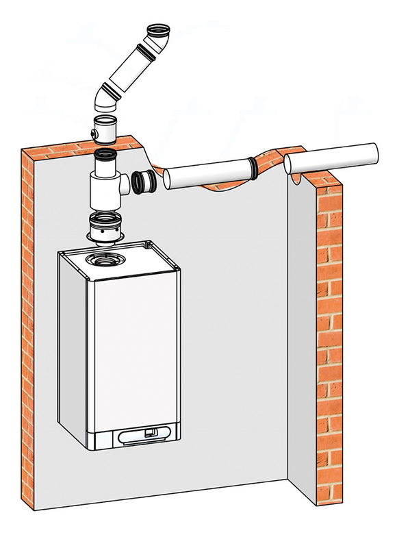 - Одностенная вытяжная труба для газового водонагревателя не может использоваться внутри стен, потолков и любых труднодоступных мест — необходимо установить вытяжную трубу с двойными стенками / вентиляционную трубу B.