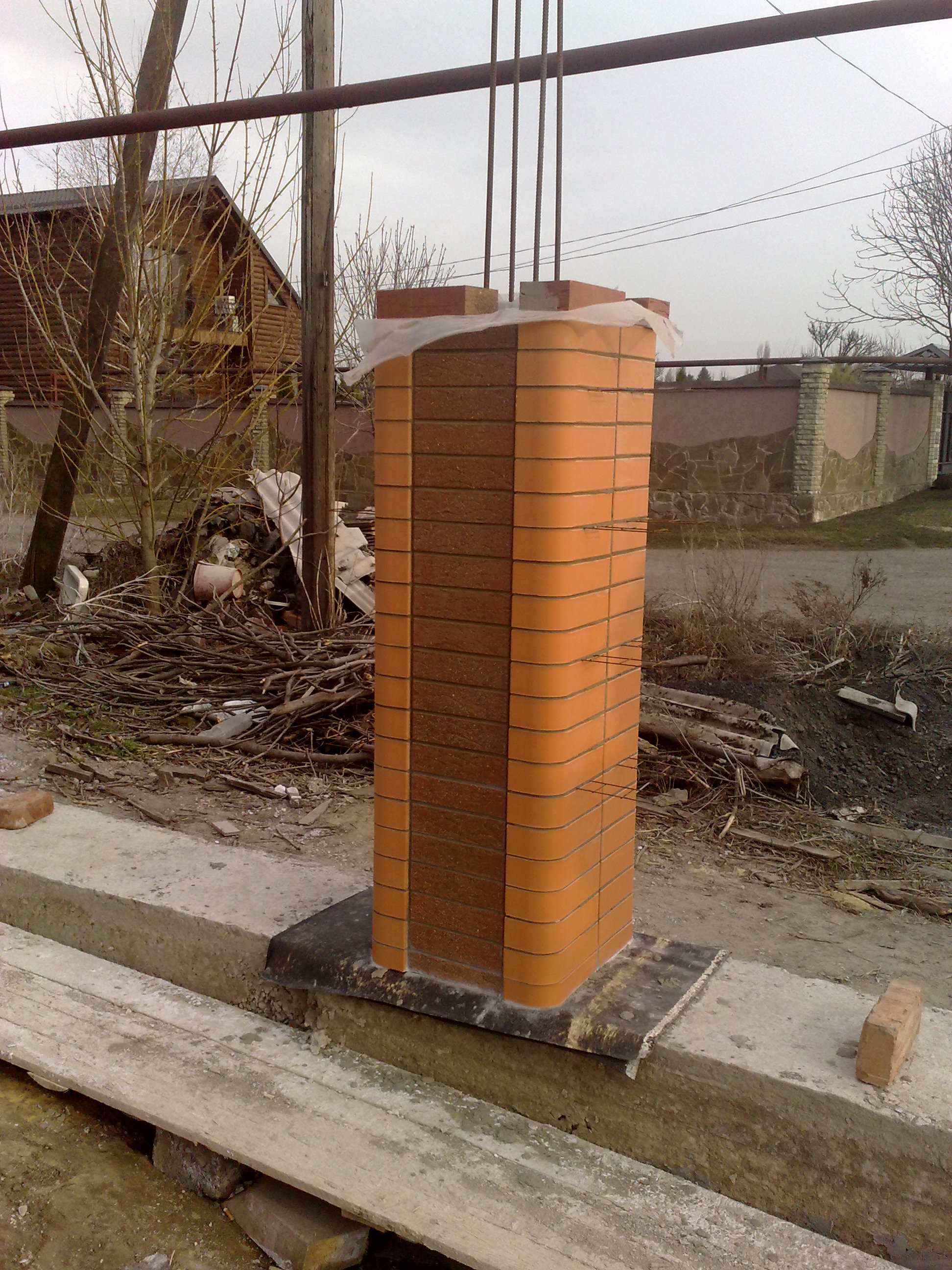 Π§Π΅ΡΠ²Π΅ΡΡΡΠΉ ΡΠ°Π³. ΠΠΎΠ΄Π½ΠΈΠΌΠ°Π΅ΠΌ ΠΊΠ»Π°Π΄ΠΊΡ Π½Π° Π²ΡΡΠΎΡΡ Π΅ΡΠ΅ ΡΡΠ΅Ρ ΠΊΠΈΡΠΏΠΈΡΠ΅ΠΉ ΠΏΠΎ ΡΠΎΠΉ ΠΆΠ΅ ΡΡ Π΅ΠΌΠ΅. Π‘Π½ΠΎΠ²Π° Π°ΡΠΌΠΈΡΡΠ΅ΠΌ. ΠΠ°Π»Π΅Π΅ ΠΊΠ»Π°Π΄ΠΊΡ ΡΡΠΎΠ»Π±ΠΎΠ² ΠΈ ΠΏΡΠΎΡΡΠ΅Π½ΠΊΠΎΠ² ΠΌΠΎΠΆΠ½ΠΎ Π±ΡΠ΄Π΅Ρ Π²Π΅ΡΡΠΈ ΡΠΎΠ²ΠΌΠ΅ΡΡΠ½ΠΎ.