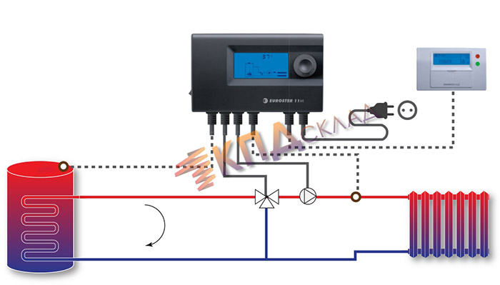 Внедрение в схему смесительного узла также защищает чугунный теплообменник от перепада температур теплоносителя, поскольку клапан не даст возможности попасть холодной воде внутрь теплогенератора.