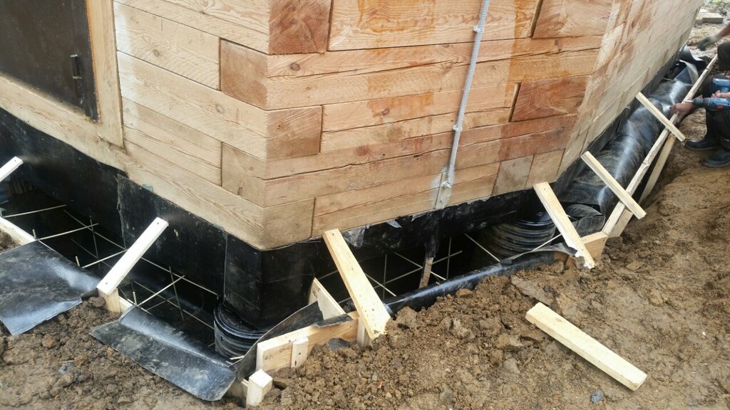 Если сделать это проблематично, можно ограничиться изготовлением отбойного барьера, направляющего воду по канаве или качественной отмостки шириной более 80 см.