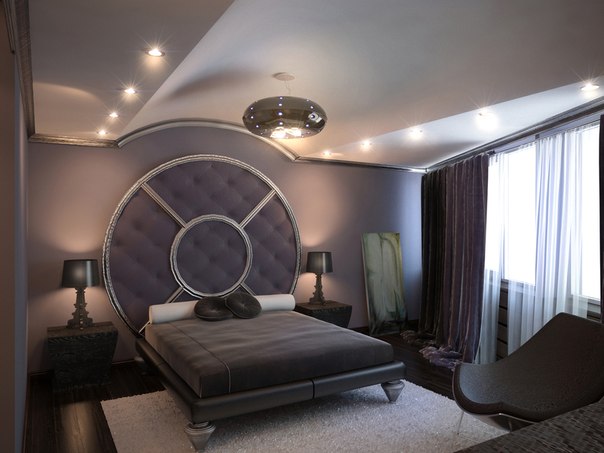 Зачастую большая кровать занимает все свободное место в комнате. Такую проблему решают французские подвесные кровати под потолок и кровати в шкафу, которые днем полностью убираются и освобождают пространство. Примеры таких спален на фото ниже: