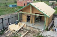 Предусматривается оконный и дверной проем, которые, наряду с проемом для ворот, усиливаются дополнительными стойками. Через всю длину конструкции гаража укладываются стропила, на которые будет зафиксирована кровля.