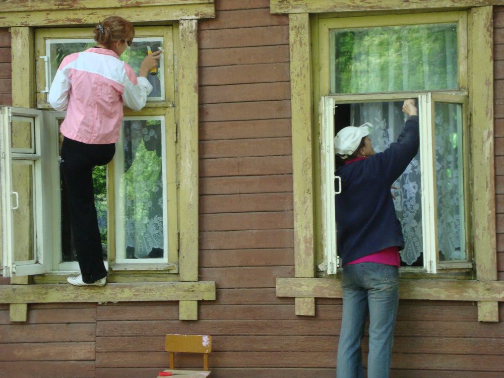 - Если штапики разрушены, то стекла вынимают, заполняют выемку оконной замазкой и устанавливают обратно. Обрамляют переплет новыми штапиками, раму окрашивают.